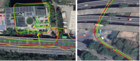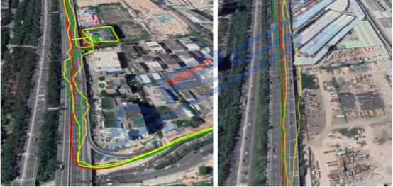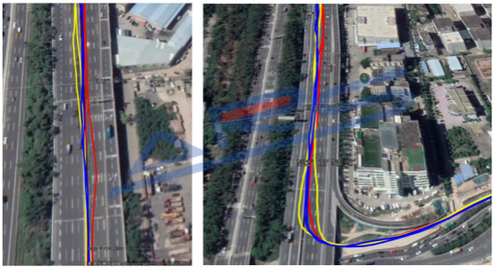 CEO1612H 模塊接三種雙頻天線,測(cè)試軌跡在開(kāi)闊地帶軌跡基本重合,在高架橋下,